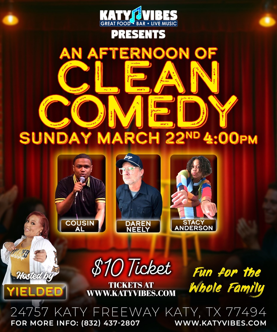 Buy Tickets😂 Clean Comedy Afternoon at Katy Vibes! 😂