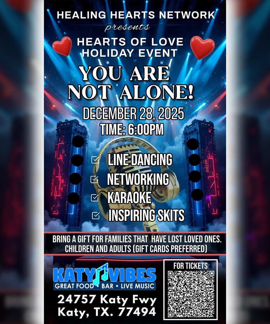 #HeartsOfLove #YouAreNotAlone #HealingHeartsNetwork #HolidayEvent #SupportBereavedFamilies #KatyVibes #VibeStronger