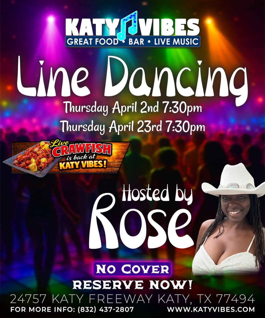 🎉 Make your plans for Thursday, April 16, then head to Katy Vibes for line dancing, crawfish, and great energy. 🦞