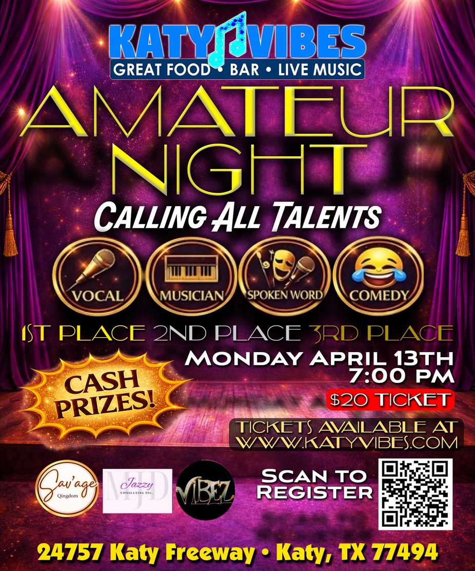 #AmateurNight #KatyVibes #LiveTalent #SpokenWord #ComedyNight #KatyTX #CashPrizes #VibeStronger