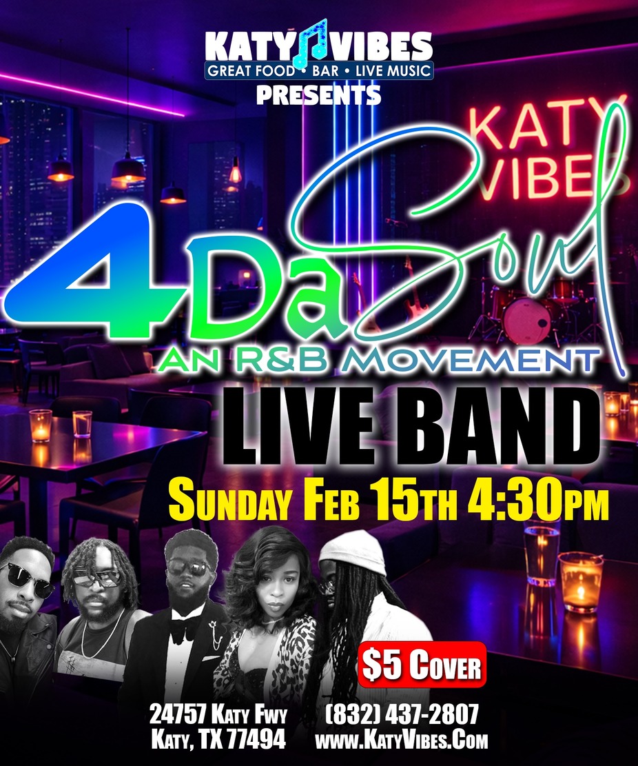 🎶 Sunday, Feb 15th at 4:30 PM, 4 Da Soul hits Katy Vibes with smooth R&B energy! 🔥