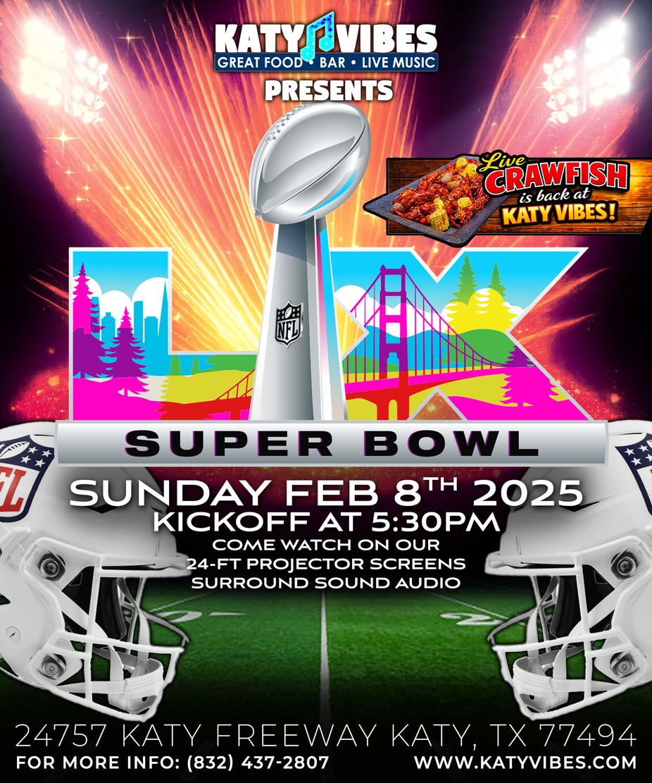 #SuperBowl #SuperBowlLIX #NFL #WatchParty #KatyTX #KatyVibes #Crawfish #BigGame #VibeStronger